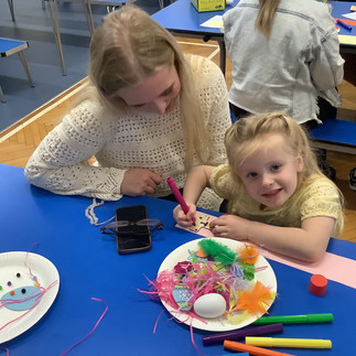 Reception enjoyed it when our parents came into school to make Easter crafts with us. Our Easter hats looked fabulous. The parents and children were very creative.